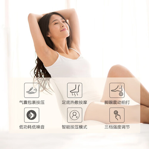 配置顶揉按摩头,交替震动按摩脚后跟的同时带动到小腿肌肉,一起进行按摩更舒适。36w低功耗,全天开启也只用一度电。