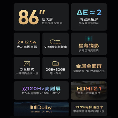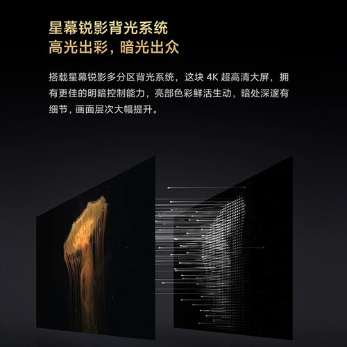 杜比视界技术,画质呈现清新逼真,给你仿若身临其境之感。星幕锐影背光系统,画质逼真栩栩如生。