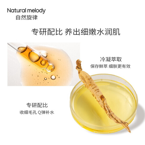 爽肤水中含有北美金缕梅、人参、茯苓等成分,能够快速为肌肤补充水分,从而细致毛孔,让肌肤变得Q弹有光泽。