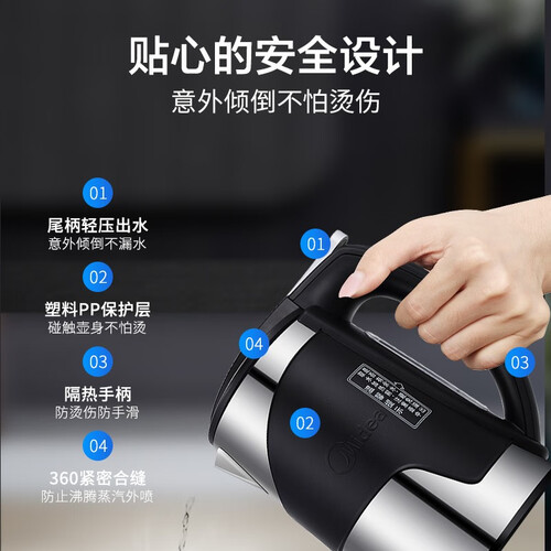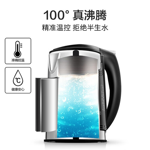 推杯式取水,单手可轻松操控,设计更贴心。外置沸腾胆设计,精心选材避免热单加热不均,每滴都是真沸腾水。
