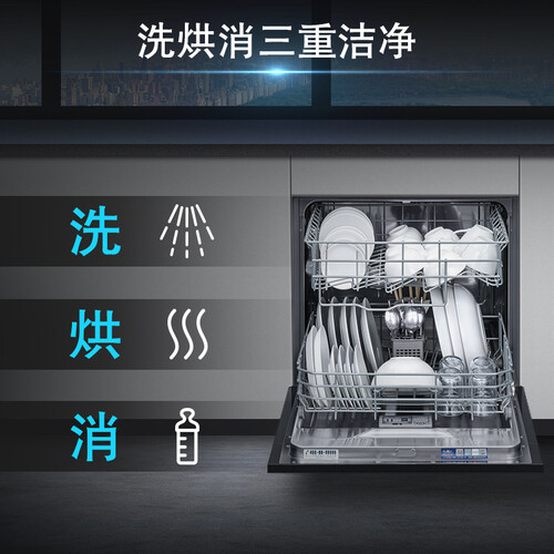洗消烘三重洁净设计,德系精工,相比手洗还干净。温热交替烘干技术,让餐具更干净,不会有水渍残留,用得很省心。