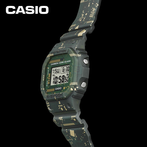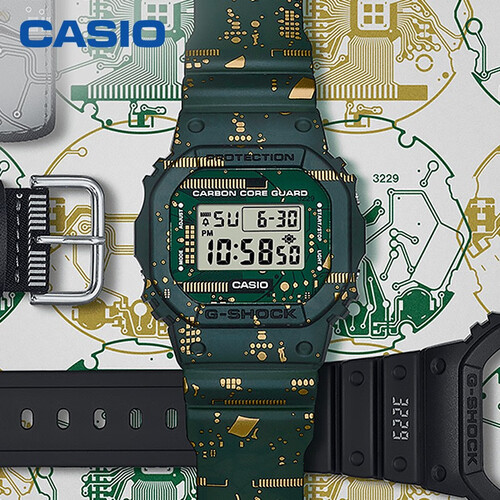 绿色电路板迷彩表圈搭配同款表带,演绎低调前卫的时尚。全自动日历无需调节,使用更方便舒心。