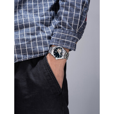 表盘采用了镂空设计,新颖潮流,时尚感满满。深邃简约的蓝色表盘,展现成熟优雅魅力。