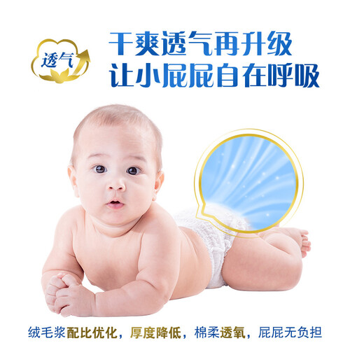 裤围加柔加高,减少肌肤摩擦,宝宝感觉更加舒适。优化绒毛浆配比,有效降低产品厚度,更纤薄,更透气,让宝宝屁屁无负担。