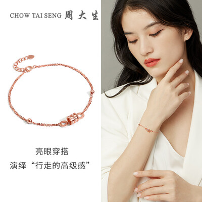 两端较宽中间偏窄的珠串展现小蛮腰一般的精致感,两侧的圆环简洁大方,给手链以丰富的视觉感。经典的车花工艺呈现出闪亮的光泽。