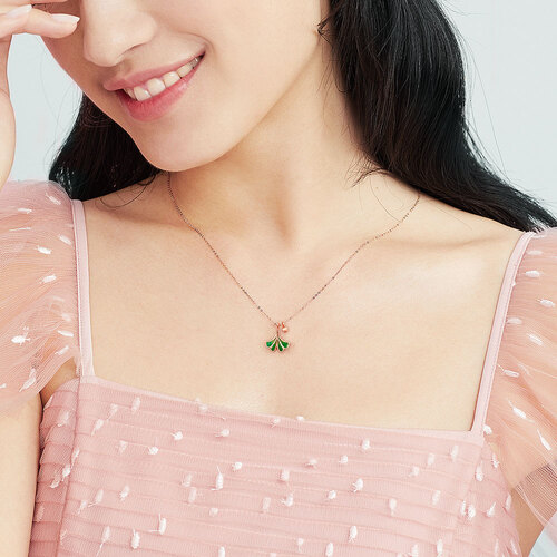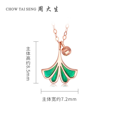 周大生 珐琅银杏叶吊坠项链