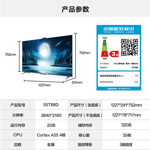搭载分体式的摄像头,可以用来视频通话、AI健身,使用更加科技化,还有全场景的AI系统,能免遥控器操控。