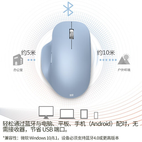 搭载了蓝牙5.0版本,可轻松通过蓝牙和电脑、平板、手机进行配对,不用安装接收器,也不用USB端口,轻松连接。