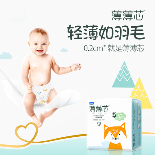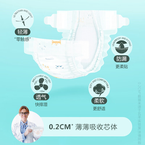 采用超薄芯体的技术,能够迅速吸收尿液,不会起坨。拥有5,000万个透气孔底膜,吸湿而又排汗,时刻保持穿着干爽自在。