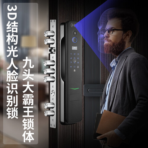 双面异色,外面霸道,里面柔韧,20个闭锁点,超甲级防撬标准,10cm门厚蜂窝填充,阻隔噪音,C级防盗锁芯,放技术性开锁。