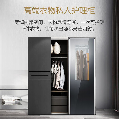 微蒸汽分子,塑形除皱,恢复衣物挺括,净菌除螨,呵护娇嫩肌肤。定制香薰,生活异味一挂即除,热泵式烘干,重现衣物典雅质感。