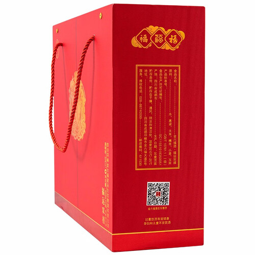 福运双禧礼盒,内含两瓶浓香型佳酿,采用高粱、大米和小麦酿成,口感绵柔浓醇。酒瓶设计十分精致,红金两色搭配灯笼,喜庆大气。