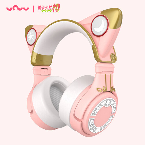 魔卡少女樱联名款耳机,有着粉白撞色的机身,展现出俏皮萌趣的气质。拥有RGB闪耀灯效与专属小樱音效,充满个性感。