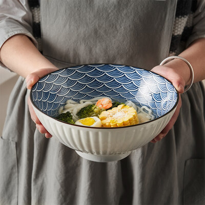 采用釉下彩工艺制作,色泽清新,使用更放心。外表螺纹手感更防滑,广口式碗口容量更大,厚碗身高底座,端拿方便不烫手。