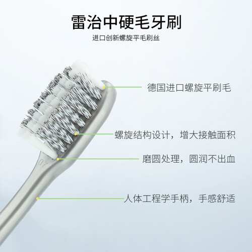 刷毛采用竹炭材质制作而成,独特的多孔吸附能力,帮助清新口气。刷柄中轴部分采用防滑条设计,握持服帖。