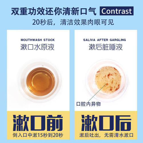 漱口20秒,可以使口腔更抑菌,温柔呵护口腔环境。搭配一次性的便携式包装,撕开即用,即可清新口气。