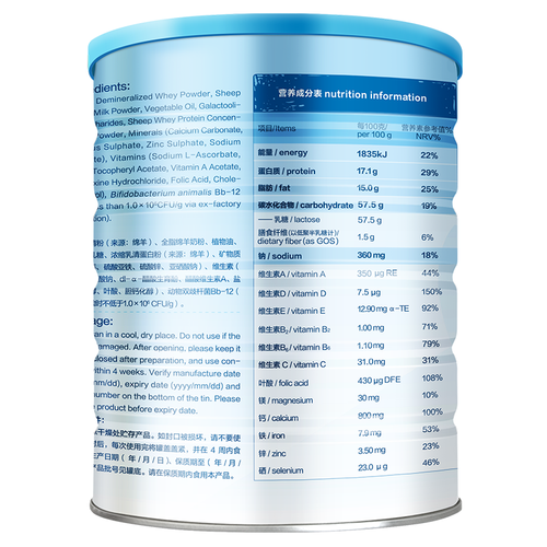 采用纯羊乳成分,口感更加顺滑细腻。天然A2蛋白,对人体更有亲和力。益生菌和益生元组合成分,助力肠道健康。