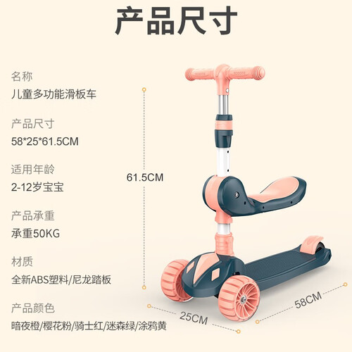 博海鼎盛儿童可坐可推滑板车