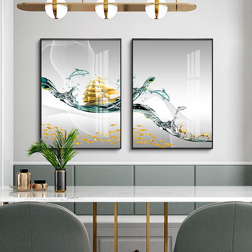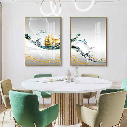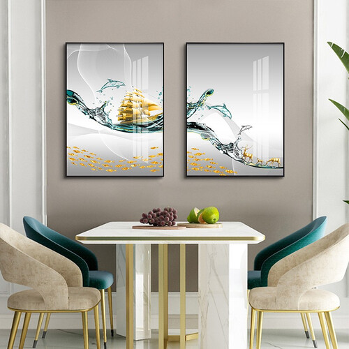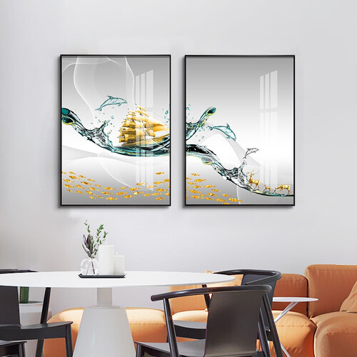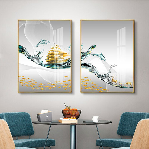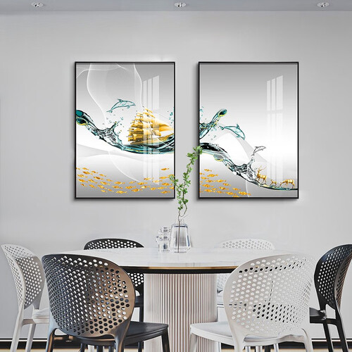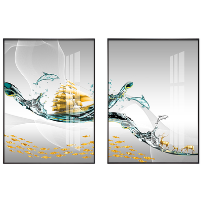 装饰画采用高清微喷工艺,帆船和浪花印染的十分清晰,画面灵动美观。金属外框具有较好的防水能力,长时间悬挂不会变形。