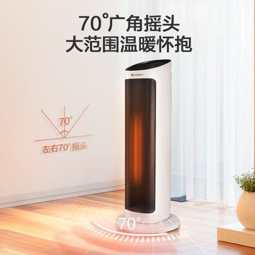 开机即享舒适暖流,这款格力取暖器它是采用PTC陶瓷发热体,实现快速发热。大范围摇头送暖,暖风左右70°均匀传递,更暖和。