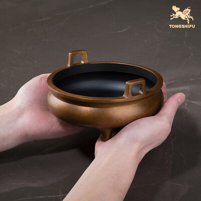 精选优质精黄铜材质,炉耳高挑,炉身丰腴圆润,线条优美,饱满庄重。铜彩色泽古朴,底蕴庄重深厚。