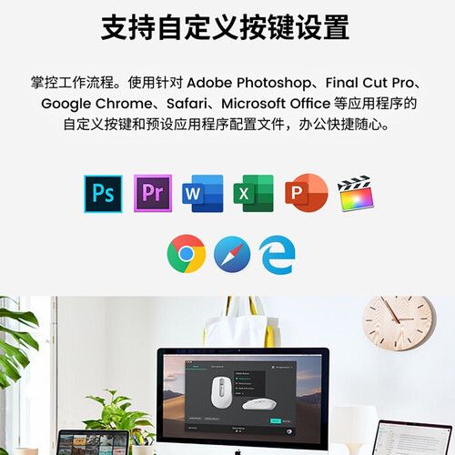 适合通勤携带的无线鼠标,体积小巧,携带不占空间。配合可充电锂电池,电力充沛耐用,满足长时间的办公需求。