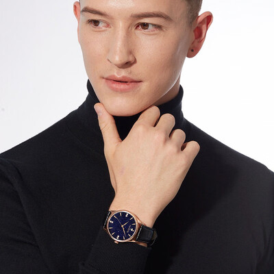 蓝砂石打造而成的表盘,点缀6颗天然钻石,熠熠生辉,让你散发深邃迷人的气质,表带采用鳄鱼纹牛皮制成,佩戴柔和舒适。