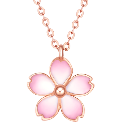 珐琅樱花吊坠,清新柔和的粉色,尽显甜美浪漫的少女心。表面经过镀玫瑰金工艺处理,色泽优雅出众,品质突出。