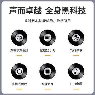 全频高性能喇叭与重低音振膜组合,使音质更震撼动听。并具备U盘、TF卡及音频线连接等多种连接模式,音乐播放更随心所欲。