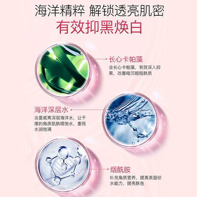 易吸收不油腻的乳液,添加了多种亮肤成分,能帮助淡化色素,持久润白肌肤,摆脱暗沉无光,为你打造雪白透亮美肌。
