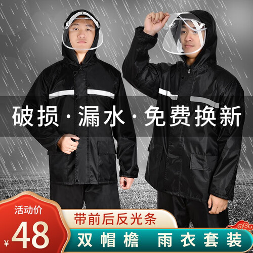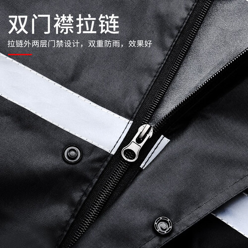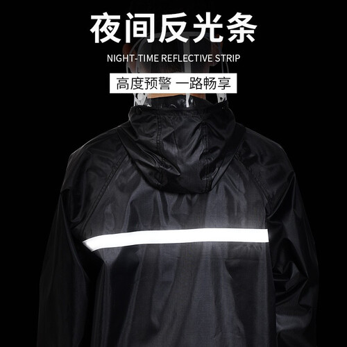 加大双层帽檐设计,保护脸部不被雨水淋到,增强防水防风功能,雨大也不会淋湿身体。前胸后背配有高亮反光条,提高夜间出行安全。