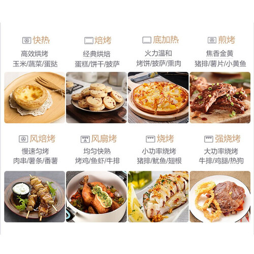 配备多道自动菜单,烘焙食物轻松便捷,畅享不同口感美味。准确控温技术,持续输出恒定温度,避免食物焦糊夹生。