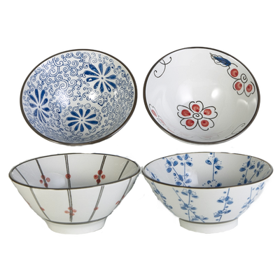 人工手绘花纹设计,有助于提升艺术美感,使碗具整体带着点复古风又不失可爱质朴的气息。