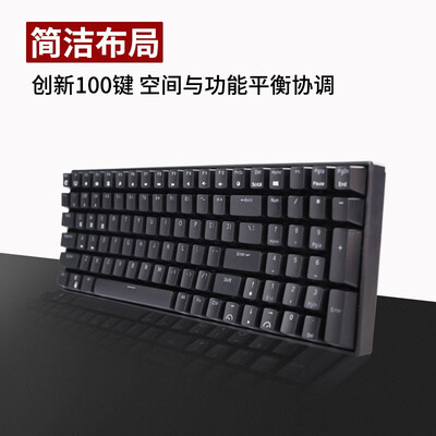 功能完备的一百键布局,结构简洁清爽,整体尺寸合适,减少桌面空间占用。机械轴体,长久使用手感稳定如一,四种轴体随你挑选。