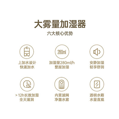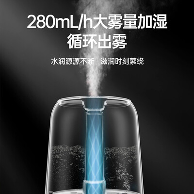 大雾量加湿,快速驱散干燥空气,贴心呵护您的肌肤。循环出雾的设计,多方位均匀扩散水雾,轻松达到整屋加湿的效果。