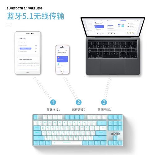 支持蓝牙5.1无线传输,稳定可靠,节省你的宝贵时间。严选机械轴体,快速响应低延迟,工作时光顺心更顺手。
