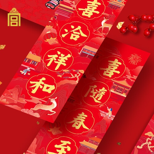 来自紫禁城的新春贺礼,福禄同贺,春节礼盒装。带有春联、福字、窗花、门神、红包、春条,趣味新年,创建自己的年味小世界。