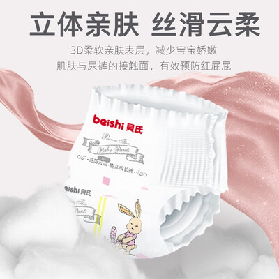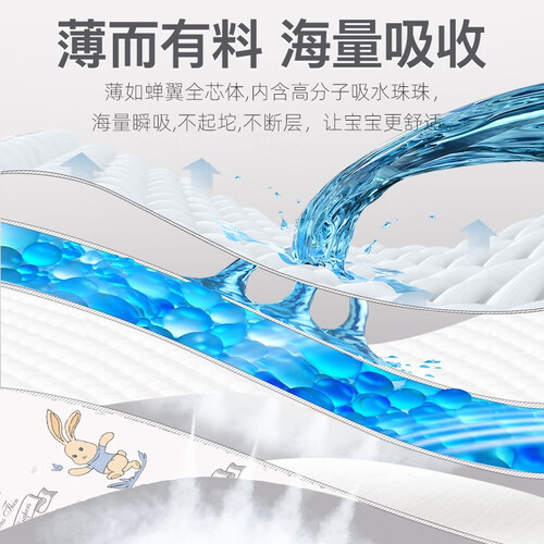 云感丝柔,亲和肌肤,海量吸水珠,瞬吸干爽,宝宝自在玩耍。3D表层,减少与肌肤接触面,避免红屁屁。贴心尿显,方便及时更换。