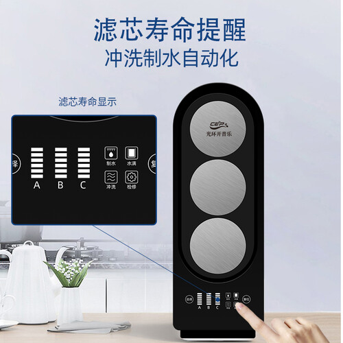 无桶大通量,畅快出水,滤后净水直接使用,新鲜纯净,无需等待。智能更换滤芯,保障水质纯净,守护家人健康。