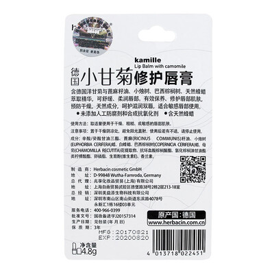 含有德国洋甘菊与多种护肤植物萃取成分,更好的舒缓和柔嫩唇部。含天然蜂蜡,改善肌肤粗糙,是天然的保护屏障。