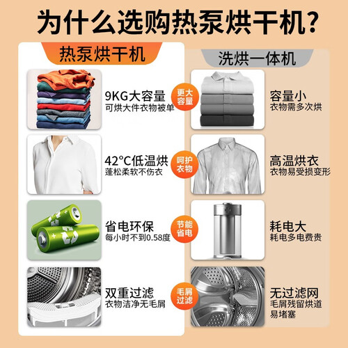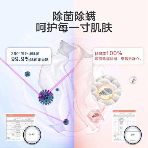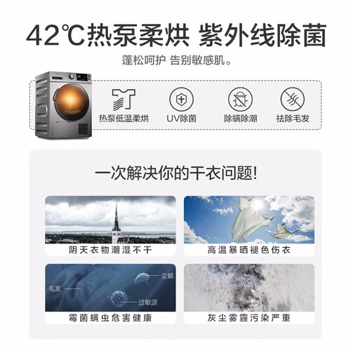360°紫外线反射,全方位立体除菌,有效祛除衣物异味。42℃热泵柔烘,低温烘干不伤衣物,还可保持衣物蓬松质感。