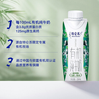 通过中国与欧盟有机双认证,天然奶源制造,纯正无添加。全脂配方,高钙优蛋白,营养新升级,奶香浓郁,口味纯正,健康美味。