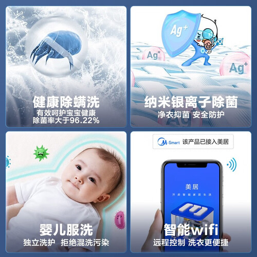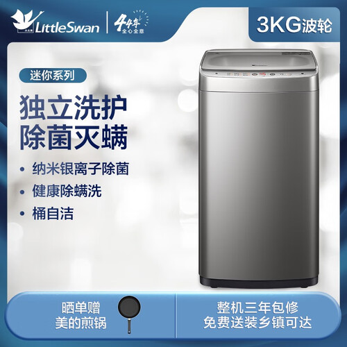 3KG洗涤容量,机身小巧迷你,家居摆放不占空间,小户型也能使用。自带纳米银离子灭毒功能,能够除螨清洗,适合母婴使用。