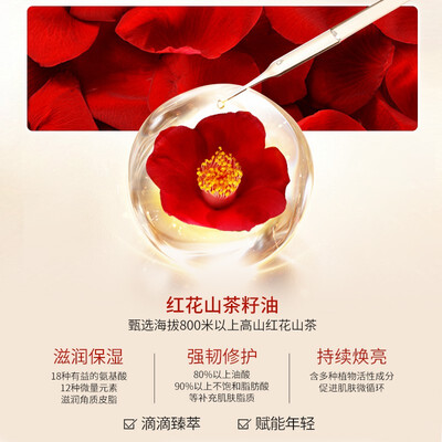含有霍霍巴籽油成分,改变暗哑发黄的肤色,保持面部白嫩富有光泽。內含山茶花籽油精华,修护干痒泛红肌肤问题,强韧肌肤屏障。