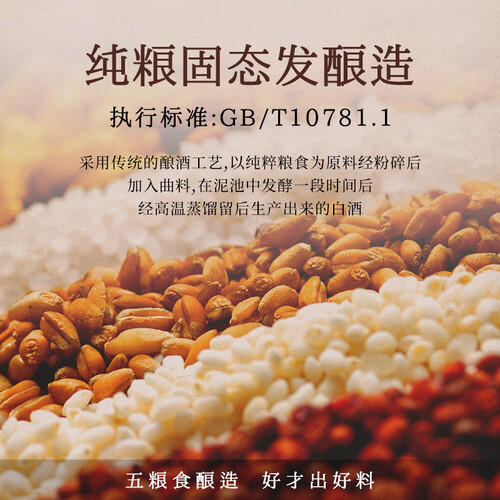 选用多种纯粮酿造,保留了粮食原有的营养,喝起来更健康。多年的老品牌,不论自己喝还是送礼都不会有失体面。