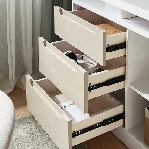 台面大小可自由调整,灵活随心,搭配加厚的面板,结构稳定,承重力强。半开放式加抽屉储物设计,合理分区置物,取放更便捷。