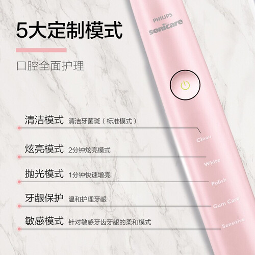 5种模式设计,随心切换,轻松满足您的多种洁牙需求;搭载机身的IPX7级防水功能,水洗无损。