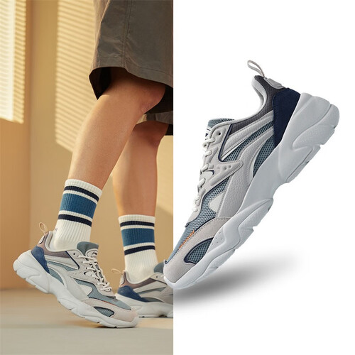 灰调色彩演绎,多色系拼接,层次感鲜明,低调耐看显质感,散发出满满的复古气息。局部织物网材,排湿透气,足感清爽舒适。