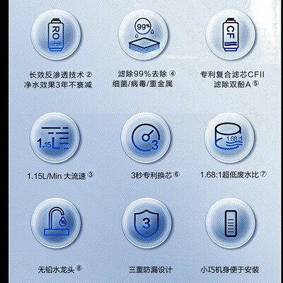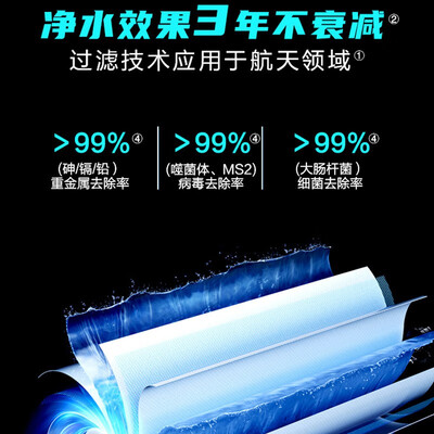 应用航天领域过滤技术,长达三年反渗透,时刻守护全家饮水安全。1.15L/min的大流量出水,畅饮鲜活好水不久等。