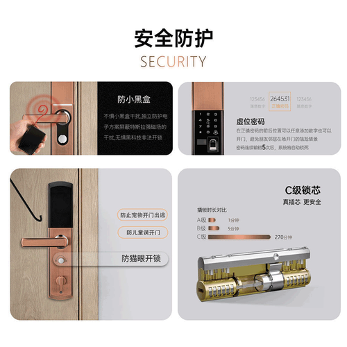 人体工程学设计的指纹舱,指纹识别速度小于0.3秒,老人、小孩都能轻松使用。设计有智能缓降滑盖,下压把手滑盖会自动关闭。